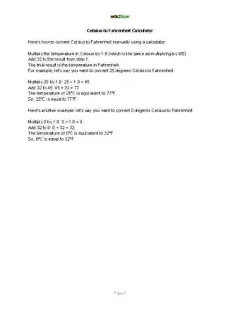 wikiHow Staff EditorStaff AnswerPlug 25 into the formula C x 1.8 + 32. Start by multiplying 25 by 1.8, which gives you 45. From there, add 32 and 45 together to get 77. Therefore, 25°C is 77°F.