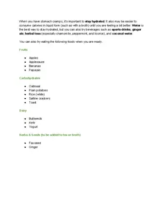 3Let your stomach settle. In addition to stomach cramps, vomiting and nausea are associated with gastroenteritis.[30] Let your stomach settle then slowly begin to eat easy-to-digest and bland foods. Avoid spicy and fatty food, dairy products, caffeine, and alcohol for a few days.