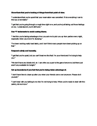 • Try to use “I” statements instead of casting blame. For example, you could say “I feel like you take for granted how often I help you with work projects, even though we don’t work for the same company.”[9]