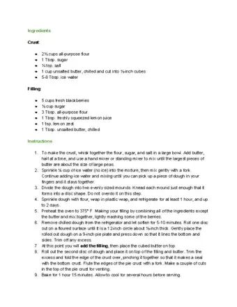 - Most recipes for blackberry pies are as simple as blackberries, sugar, flour, milk, and pie crust. Combining the berries, sugar and flour into the pie shell and placing it in the oven for 15-35 minutes can emerge a wonderfully baked blackberry pie.[10]