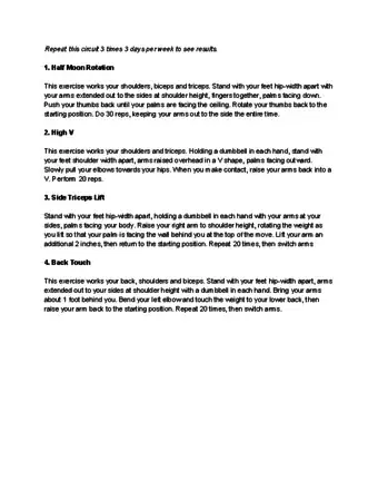 10Do arm circles. Arm circles are a great, easy exercise that can be performed anytime, anywhere, making them a great exercise option for beginners. Arm circles help to tone both your biceps and triceps, while also strengthening the back and shoulders.[8] To do arm circles:
