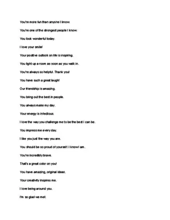 - Remind yourself of your strengths by listing them out to yourself. You might say, “I'm a great listener” or “I can make people laugh.”