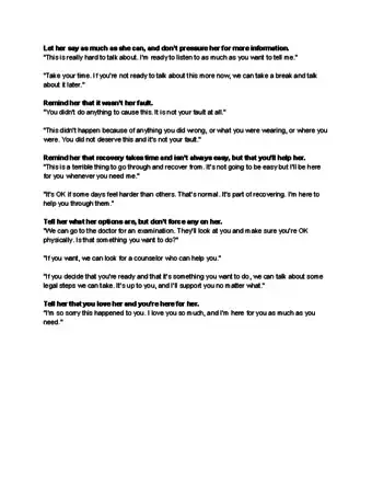 - Don't tell your daughter about the progress of other sexual assault victims, which may make her doubt her own journey to healing.
