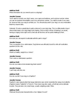 To spot an Afghan hound, check for a distinctive long, silky coat that flows from the dog’s head and body. You should also see if the dog has long legs and a lanky figure. Additionally, look for a long, pointy face and large, floppy ears. Check if the eyes are dark and almond-shaped, while the tail is short, narrow, and curved into a semi-circle. To identify an Afghan hound based on temperament, look for an independent personality with little desire for attention. The dog might also be hard to train and have strong hunting instincts. For more advice from our Veterinarian co-author, including how to verify your dog’s breed, keep reading!
