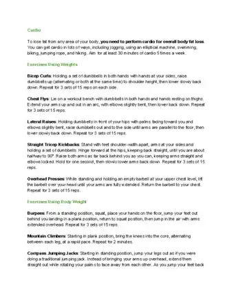 Losing fat from the upper half of your body requires a few different approaches. You’ll need to do some cardio workouts to burn fat. Exercise your chest and arms and your back to emphasize your muscles and get rid of pesky back fat. And eating a healthy diet can make sure your hard work in the gym doesn’t go to waste.