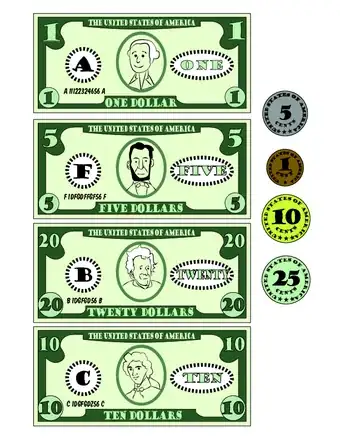 • If you are using construction paper, you may want to use one color for each dollar value to make it easier.