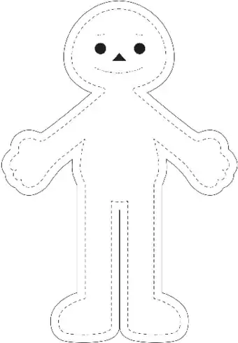 2Draw the outline for your doll on a cloth. To make things easier, download free templates from websites like AllFreeSewing.com, Pinterest, or AllCrafts.net. Then, trace the outline onto the fabric. Add some extra width (half an inch to 5/8") all around the outside of your outline for a seam allowance.