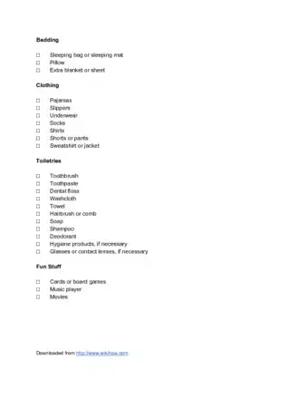 - If you are a parent, you may want to check your child’s bag before they leave for the sleepover to make sure they brought all of the things they’ll need and left behind any items that might be disruptive. Let your child take some snacks as long as they share them out and if it is okay with their parents.⧼thumbs_response⧽