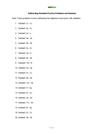 2Subtract like terms. When you're working with variables, you can only add or subtract terms that have the same variable and which are written to the same degree.[17] This means that you can subtract 4x2 from 7x2, for example, but not 4x from 4y. This means that you can break the problem down like this: