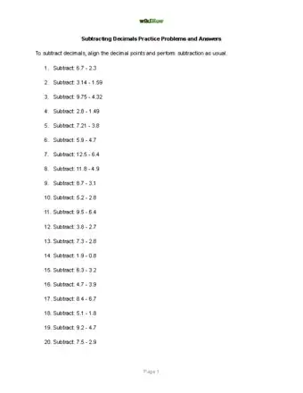 Subtraction is simply taking one number away from the other. It's pretty straightforward when you're subtracting one whole number from another, but subtraction can get a bit more complicated when you're working with fractions or decimals. Once you get the hang of subtraction, you'll be able to move on to more complicated mathematical concepts, and will be able to add, multiply, and divide numbers with greater ease.