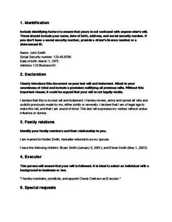 - For example, one line may read: “To Barbara Smith, I give my house at 123 Cherry Lane, and to Chauncey Gardner, I give 50 percent of the remainder.”