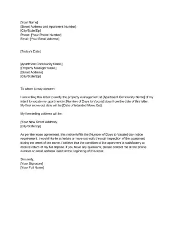 • In most states, you do not need to state any specific reason for your intent to terminate.[10] It is sufficient to simply state that you are terminating your tenancy as required by law.