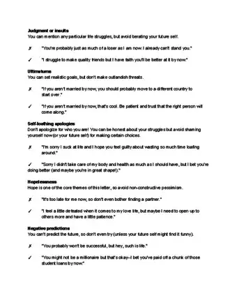 • When talking about your current self in this letter, use “I” language. When talking about your future self in this letter, use “you” language.
