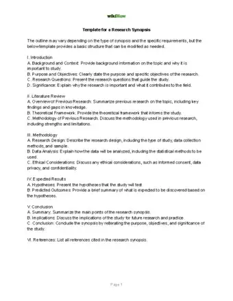 Tip: Your synopsis might have additional sections, depending on your discipline and the type of research you're conducting. Talk to your instructor or advisor about which sections are required for your department.