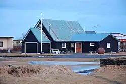 Fishing became a more important occupation after 1855 when the Danish–Icelandic Trade Monopoly was abolished and patterns of settlement changed greatly.[3] The village's heyday was from the mid-19th century to the early 20th century but with improved public transport and occupational opportunities the number of inhabitants decreased. Because of that, many houses from 1890 to 1920 have been preserved; those little houses of the common people characterize the village.[6][7] Not far from the Folk Museum is the church (1890) where the altarpiece is worthy of notice. It is given and painted by the Danish queen Louise of Hesse-Kassel.[8]