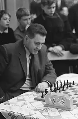 After the war, he took 13th at Groningen 1946 (Mikhail Botvinnik won),[6] took 13th at Moscow 1947 (Chigorin Memorial, Botvinnik won), shared 2nd at Vienna 1947 (Schlechter Memorial, László Szabó won), took 3rd at Beverwijk 1947 (Theo van Scheltinga won),[7] took 4th at Bad Gastein 1948 (Erik Lundin won), tied for 8-9th at Beverwijk 1948 (Lodewijk Prins won),[8] took 9th at Venice 1949 (Szabó won), took 10th at Trenčianske Teplice 1949 (Gideon Ståhlberg won), tied for 3rd-6th at Vienna 1949 (Schlechter Memorial, Foltys and Stojan Puc won),[9] tied for 9-10th at Szczawno Zdrój (Salzbrunn) 1950 (Przepiórka Memorial, Paul Keres won),[10] took 17th at Amsterdam 1950 (Miguel Najdorf won),[11] and won at Lucerne 1953.[12]