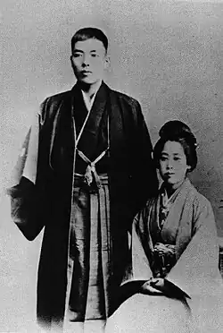 ![]() Ōnishi Aijirō with his wife To'o in October 1904 while he was a Tenrikyo missionary in Yamaguchi Prefecture | |