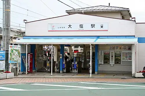 Ōshio Station (大塩駅, Ōshio-eki) is a passenger railway station located in the city of Himeji, Hyōgo Prefecture, Japan, operated by the private Sanyo Electric Railway.