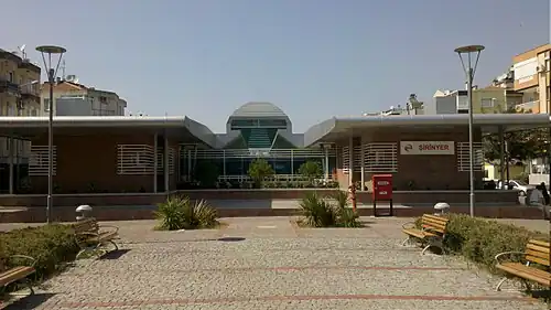 Şirinyer railway station (Turkish: Şirinyer Tren İstasyonu) is an underground railway station of the İZBAN commuter rail system. The current station was built between 2006–09 and opened on 30 August 2010.[1] The former station was opened in 1858 by the Ottoman Railway Company and was taken over by the Turkish State Railways in 1935. Before the 1950s, Şirinyer was known as Kızılçullu Durağı.