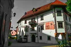 Škofja Loka (pronounced [ˈʃkòːfja ˈlòːka] ⓘ; German: Bischoflack) is a town in Slovenia.[2] It is the economic, cultural, educational, and administrative center of the Municipality of Škofja Loka in Upper Carniola.[3] It has about 12,000 inhabitants.