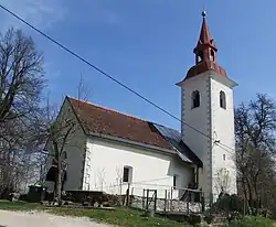 The local church is dedicated to the Assumption of Mary and belongs to the Parish of Škocjan pri Turjaku. In its core it is a 15th-century Gothic building that was restyled in the Baroque in the mid-18th and 19th centuries.[4]