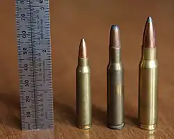(25 Remington) (center) with 223 Rem (left) and 308 Win (right). | ||||||||||||||||||||