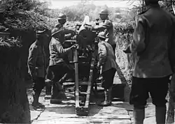Romanian troops firing a 10.5 cm Kanone C/85. -