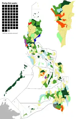| Bil | BPP | CDP | KBL | LDP | Lakas | LM | LP | NP | NPC | NUP | PDP | PDSP | PMP | UNA | Ind | LT | PL | Vacant | ||