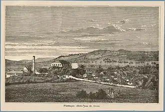 In 1718 the Danish claimed the island of St. John to develop sugar plantations and crops such as indigo and cotton; there was an especially great demand for sugar and prices were high in Europe. Dutch planters were still important on the island. By mid-1733, planters had developed 109 plantations, and slaveholders owned more than 1,000 African slaves on St. John.[2] One-fifth of the plantations were then devoted to sugar; by the end of the century, most would be, and the total slave population would be 2,500.[2] In 1733 the population of African slaves on St. John was more than five times as large as that of the European inhabitants: 1,087 slaves and 206 whites.[5] Many of St. John's plantations were owned by people residing on St. Thomas. These absentee landowners hired overseers to manage their lands and slaves on St. John. Under these conditions, overseer cruelty flourished. The Danish West India Company provided only six soldiers for the defense of St. John, which supplemented the local white militia.[2]