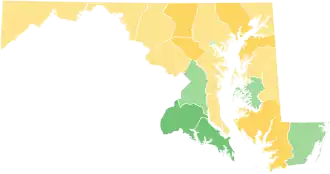 | Prince George's | 1,048 | 53.01% | 885 | 44.76% | 43 | 2.18% | 1 | 0.05% | 163 | 8.25% | 1,977 |