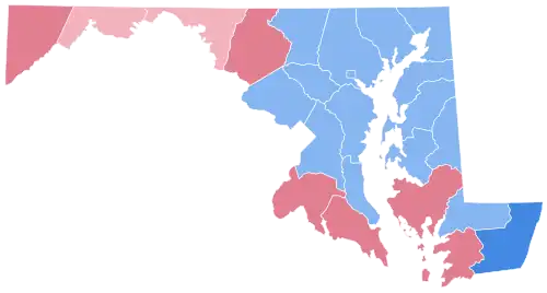 In this election, Maryland voted 8.89% more Democratic than the nation at large.[1]