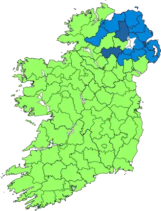 ![]() Results of the 1886 election in Ireland Conservative Liberal Unionist Irish Parliamentary Party | |||||||||||||||||||||||||||||||||||||||||||||||||