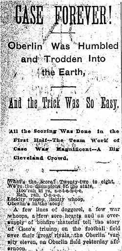 2. ^ "Something About the Case Men. They Had No Coach but They Played Good Football--Seventeen Men Are on the Cleveland Reserve List". Plain Dealer. Cleveland, Ohio. December 10, 1893. p. 13.