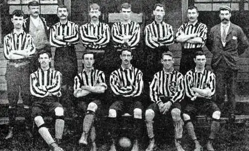 Many players from the previous season agreed to professional terms and remained. The club also signed Joe Dickenson, a player born in Chatham,[10] who had last played for Bolton Wanderers of the Football League First Division and been in the Bolton team which lost to Notts County in the 1894 FA Cup final.[6][10][11] The concept of a manager did not yet exist; significant team decisions were made by the committee or by David Hutcheson, the team captain, and the club employed a trainer called Murray.[6][12] The players wore black and white striped shirts and black shorts.[12] Ahead of the new season, New Brompton played a friendly against Barking Swifts and won 17–0; more than a century later this remained the highest score ever achieved in any match by the club.[13] New Brompton were seen as strong contenders for the championship of the division: a writer for the Middlesex and Buckinghamshire Advertiser stated that "according to some who profess to speak with authority, the Bromptonians are likely to be at the head of the Leagueists."[14]