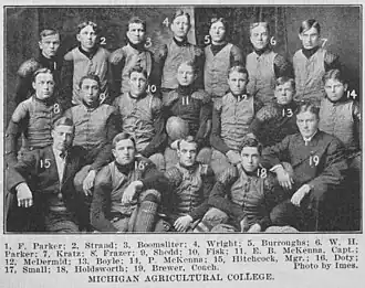 2. ^ "Farmers Are Stars—Team Works Hard and Fast And The Prospects are Bright For a Great Team—Defeated Port Huron 43 To 0". The Lansing Journal. Lansing, Michigan. October 5, 1905. p. 5. Retrieved March 22, 2025 – via Newspapers.com Open access icon.