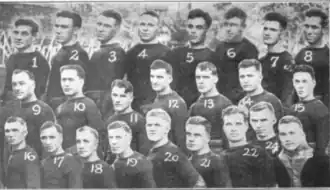 The 1914 Kansas Jayhawks football team was an American football team that represented the University of Kansas as a member of the Missouri Valley Conference (MVC) during the 1914 college football season. In their first and only season under head coach H. M. Wheaton, the Jayhawks compiled a 5–2–1 record (2–2 against conference opponents), finished in fourth place in the MVC, and outscored opponents by a total of 158 to 84.[1][2] The Jayhawks played their home games at McCook Field in Lawrence, Kansas. John Detwiler was the team captain.[2]