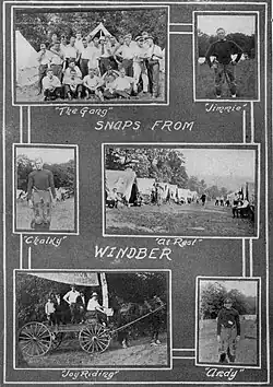 On September 8, the Pitt football aspirants started drills at Camp Hamilton, the preseason training camp at Windber, PA, under the tutelage of Coach Warner. The team will "go through a three weeks course of preparation for the strenuous season which is before them."[20] "Several holes have been left in the Blue and Gold lineup by graduation and other causes. Heil, Collins, Ward, Hanley, Cliff Morrow and Dillon are all lost from the 1914 backfield, while Smith, Reese, Jones and Healy are among those missing from the line and end positions. This gives Warner some serious problems in finding men to replace those who have left. A large part of the coach's time will be taken up by the development of the new talent."[21]