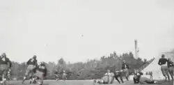 On October 27, 1923, the Aggies lost to Michigan, 37–0, at Ferry Field. Harry Kipke's "broken field running figured prominently in Michigan's scoring."[26] Richard Vick started in place of Herb Steger, who was held in reserve for the Iowa game the following week. A newspaper account of the game reported that Vick "played brilliantly, plunging and passing for repeated gains," revealing "a wealth of strength among the Michigan reserves."[26] The 1924 Michiganensian reported that the Aggies "furnished a good practice game" and noted the every player on the Michigan bench was able to play in the game.[27]