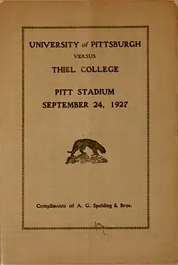 40. ^ a b "Footballers Smother Thiel In Opening Contest". The Pitt Weekly. Vol. 19, no. 1. September 28, 1927. p. 6. Retrieved June 25, 2021.