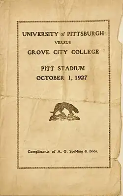 36. ^ "Pitt Panthers Squad". University of Pittsburgh Football Official Souvenir Program. University of Pittsburgh Athletic Department. October 8, 1927. p. 17.