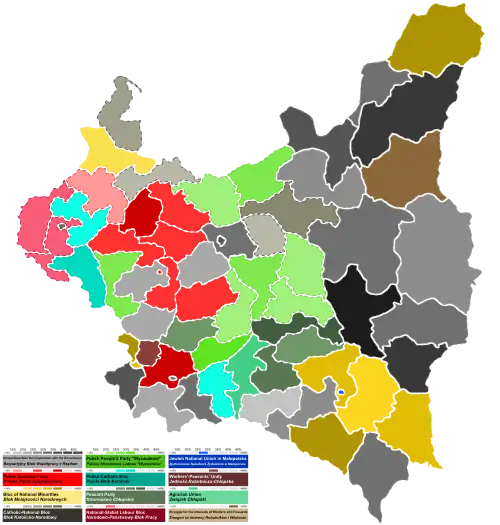 According to Kopstein and Wittenberg, 45% of the majority Catholic population voted for non-revolutionary left-wing parties, 16% for the Pro-Pilsudski bloc and 15% for right-wing parties.[9]