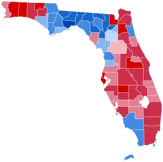 After a heated campaign in which he had played little part, Herbert Hoover won Florida against Al Smith by 42,404 votes or by a margin of 16.71 percentage points.[9] Vis-à-vis the 1924 election, swings of up to 100 percentage points occurred in the western Panhandle pineywoods, where opposition to Smith's Catholic religion reached the fanatical,[10] and Hoover also gained from increased Republican voting by northern migrants in Miami, Tampa, Fort Lauderdale, Sarasota and Jacksonville, along with the growth of an urban middle class in those cities.[10] This was the first time since 1876 that the state voted Republican. The 1928 US presidential election would be the first time that Florida would become a crucial bellwether state in presidential elections: from 1928 and on, the winner of the presidential election has carried the state in every election except in 1960, in 1992, and in 2020.[11]