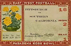 - ^ "Rose Bowl Prices Hit Gate Receipts". The Pittsburgh Press. January 3, 1933. p. 1 – via Newspapers.com.