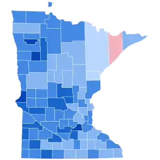 This was also only the second time since statehood that the state did not support the Republican candidate, the first being when it backed Progressive Party candidate Theodore Roosevelt in 1912. Minnesota has since voted Democratic in every presidential election except 1952, 1956, and 1972, all of which were national Republican landslides. As of the 2024 presidential election, this is the last election in which Lake County voted for a Republican presidential candidate (incidentally it was the only county to vote Republican in this election) and the last election in which Carver County and Otter Tail County voted for a Democratic candidate.[1]