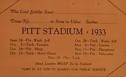 1933 University of Pittsburgh football season Boy Scout usher pass