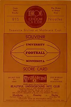 60. ^ "Detailed Accounts of the Gophers' 7 to 3 Victory". The Minneapolis Sunday Tribune. Minneapolis, Minnesota. October 22, 1933. p. Sports 4. Retrieved January 28, 2022 – via Newspapers.com.