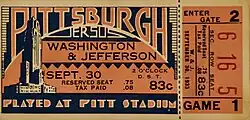 September 30, 1933 ticket stub from Pitt vs. Washington & Jefferson game