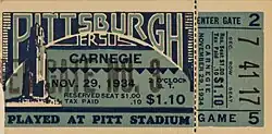 23. ^ "Pitt Cuts Ticket Prices For Kids". The Pittsburgh press. September 23, 1934. p. Sports 3. Retrieved February 17, 2022 – via Newspapers.com.