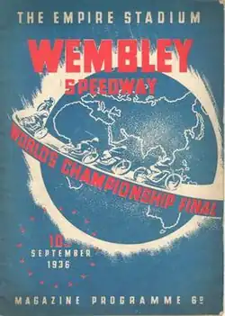 The 1936 Individual Speedway World Championship was the first ever Speedway World Championship and was won by Lionel Van Praag of Australia. The forerunner to the World Championship was generally regarded to be the Star Riders' Championship.[1][2][3] The final was held at London's Wembley Stadium in front of 74,000. It was the first of a record 26 times that Wembley would host the World Final with the last being in 1981.[4]