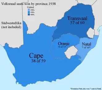 General elections were held in South Africa on 18 May 1938 to elect the 150 members of the House of Assembly.[1] The United Party won an absolute majority.